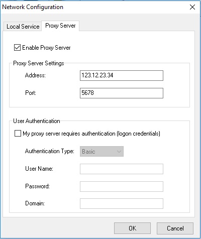 5. This step is optional. Follow this step only if your proxy server requires authentication. Select My proxy server requires authorization (logon credentials) check box and specify the values for the following fields: