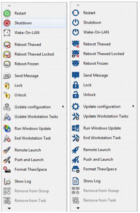 Specific icons are disabled if the selected computer does not support that action. For example, a computer that has a Target icon, will not show the option to be Thawed or Frozen, because the program has not been installed yet.