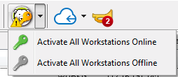 License Icon If you have workstations whose Deep Freeze licenses are not activated by Faronics License Activation Server, an activation icon appears in the toolbar. You can activate the workstations with pending activations either online or offline. Complete the following steps to activate the workstations using the activation icon: 1. Click the drop-down on the activation icon. 2. Select Activate All Workstations Online. Deep Freeze Console contacts the Faronics Licensing Server and activates the licenses. An Internet connection is required to activate online. 3. Alternatively, select Activate All Workstations Offline. For more information about offline activation, go to Manual Activation.