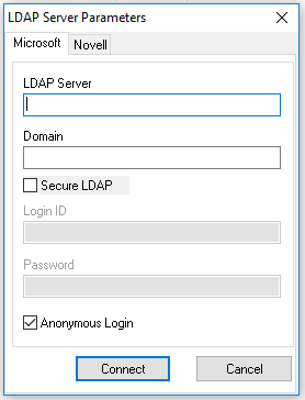 5. Click Connect. The Active Directory hierarchy appears. Select the required entries and click Import.
