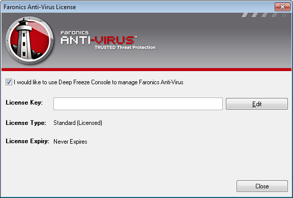 2. Go to Tools > Licensing > Faronics Anti-Virus License.