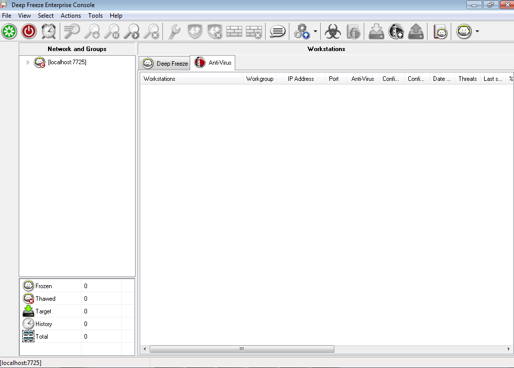 6. Click Close. The Anti-Virus installer files are downloaded. The Anti-Virus columns are displayed in the Workstation pane. The Anti-Virus sub-node is added under Available Configuration in the Network and Groups pane.