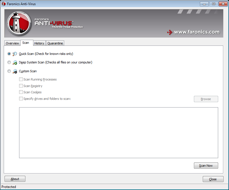 • Quick Scan- scans only known threats.