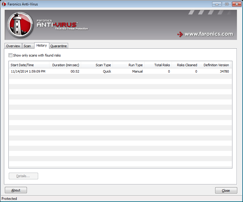 • Show only scans with found risks - select this option to view only the scans where risks were found.