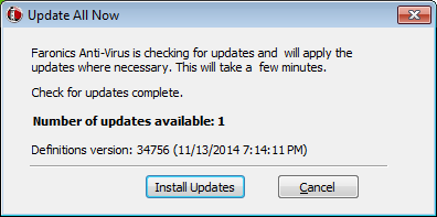 3. Click Install Updates. The virus definitions are updated on the workstation.