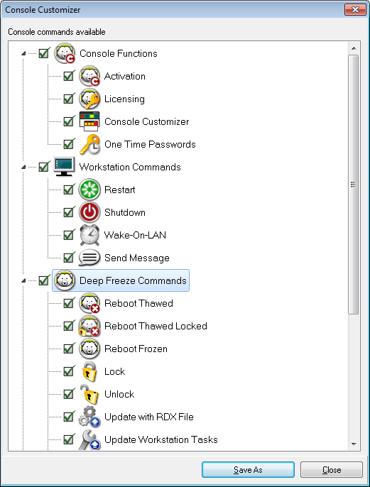 We will only leave three options under Deep Freeze commands selected: Unlock,