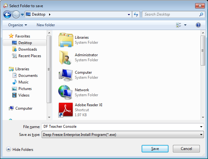 Once all options have been selected, click Save As to save a new Enterprise Console. A standard