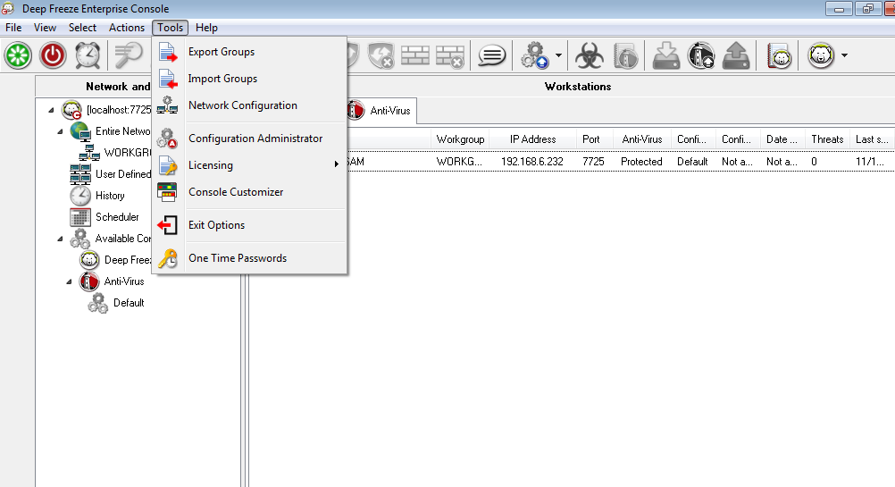 Console functions > One Time Password is not selected because we do not want a teacher to be able to reboot the computer in Thawed mode under any circumstances. If a teacher reboots the computer in Thawed mode, students might install unnecessary software on the computer which will be retained even after a reboot.