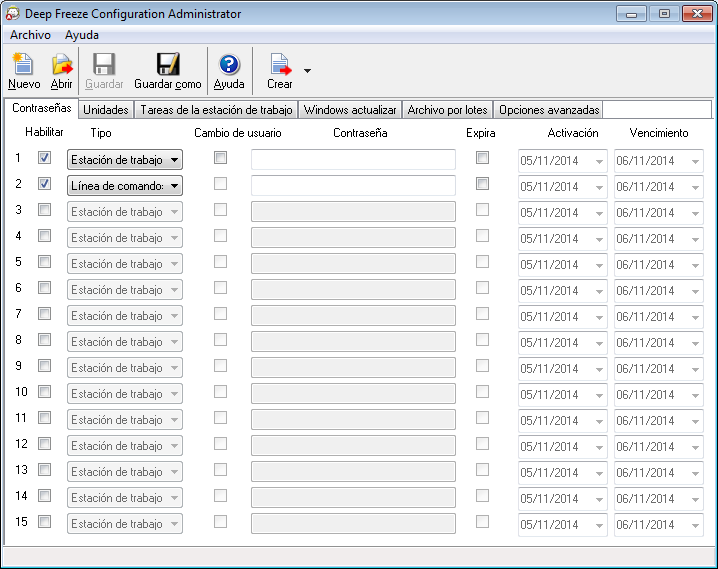 — Línea de comandos: contraseña que se debe introducir para utilizar los controles de la línea de comandos. Para poder utilizar la herramienta de control de la línea de comandos (DFC.exe) es preciso definir una contraseña para la línea de comandos.