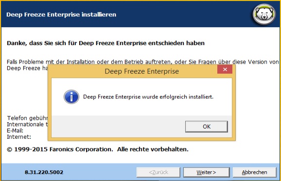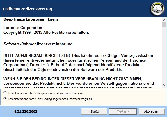 1. Klicken Sie doppelt auf die Datei DFEnt.exe, um den Installationsprozess zu beginnen. Der folgende Bildschirm wird angezeigt: