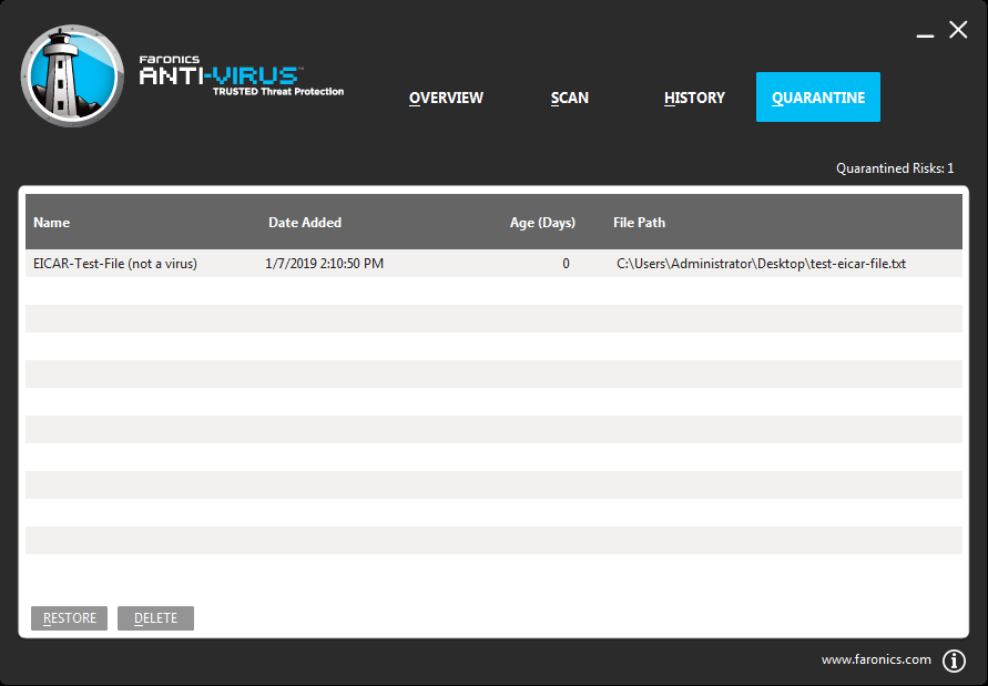 1. Go to Start > Programs > Faronics > Anti-Virus Enterprise > Faronics Anti-Virus Enterprise. Alternatively, you can double click on the Faronics Anti-Virus icon in the System Tray.