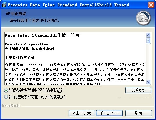 安装 Data Igloo 要安装 Data Igloo,请完成以下步骤: 如果您的计算机上尚未安装 .NET,安装程序将自动从 Internet 下载并安装 .NET。请确保您的计算机已连接到 Internet。 1. 双击 Faronics_IGS.exe。单击下一步。 2. 阅读并接受许可协议。单击下一步。 3. 输入用户名和组织。单击下一步。 4. Data Igloo 的默认位置为 C:\Program Files\Faronics\Data Igloo Standard。单击更改... 可以更改 Data Igloo 的安装位置。单击下一步。 5. 单击安装以安装 Data Igloo。 6. 单击完成结束安装。 Deep Freeze 冰点处于 Frozen 冻结状态时可以安装 Data Igloo,但重启后,创建的重定向将不会被保留。这一点对于测试重定向非常有用。Deep Freeze 冰点处于 Frozen 冻结状态时,不能卸载或修复 Data Igloo。