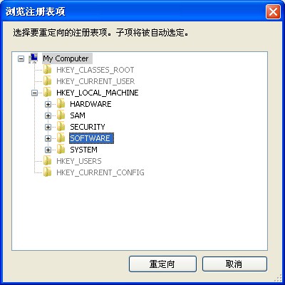 一些注册表项可能会自动显示在注册表项重定向选项卡中。这些注册表项由 Data Igloo 使用,无法手动删除。
